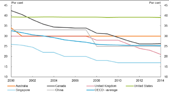 As you can see from the chart, Australia’s company tax rate is high by global standards, particularly given that many other countries have substantially reduced their corporate tax rates: