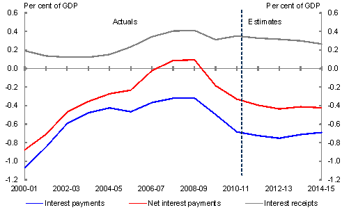 7 Net interest payments are reported in the budget papers as interest payments less interest receipts, but are shown in Chart 2 as interest receipts less interest payments to illustrate its correlation with interest payments.