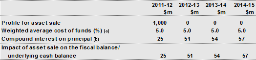 - based an assumption that the sale proceeds of $1 billion are received half way through 2011-12;