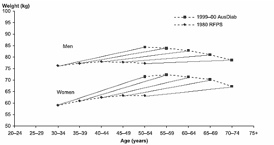 weight and obesity among Australian adults, 1980-2001’, AIHW Bulletin, No. 8 Cat.No. AUS 36, Canberra.