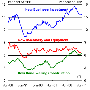 The risks identified at the time of the MYEFO are still present. On-going credit constraints, particularly in relation to medium and high density developments, continue to pose a downside risk to investment. In addition, higher interest rates could have a larger than expected impact on investment in 2010-11.