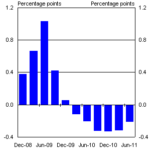 the September quarter 2009 to be 1.3 per cent higher through the year. The result was largely driven by increases in the prices of utilities, automotive fuel, house purchases and deposit and loan facilities. Over the next few quarters headline inflation is expected to move into the target band of 2 to 3 per cent and remain there for the rest of the forecast period.