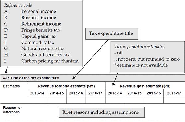 The revenue gain approach is often considered an alternative to the revenue forgone approach used to produce the tax expenditure estimates in Chapter 2. This is because the revenue gain estimates for individual tax expenditure items are thought to be comparable to estimates of the revenue impact of budget measures.