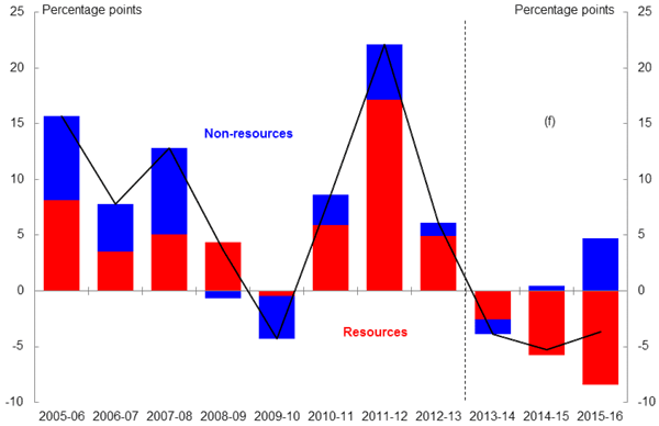 5 Over the first three quarters of 2013-14, resources investment is estimated to have fallen by about ½ a percentage point of GDP from its 2012-13 share.