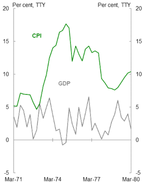 This experience stands in contrast to the 1970s boom, when both real GDP growth and inflation showed considerable volatility (Chart 4). The shock led to a ratcheting up of the unemployment rate, from less than 2 per cent at the beginning of the 1970s to more than 6 per cent at its end.